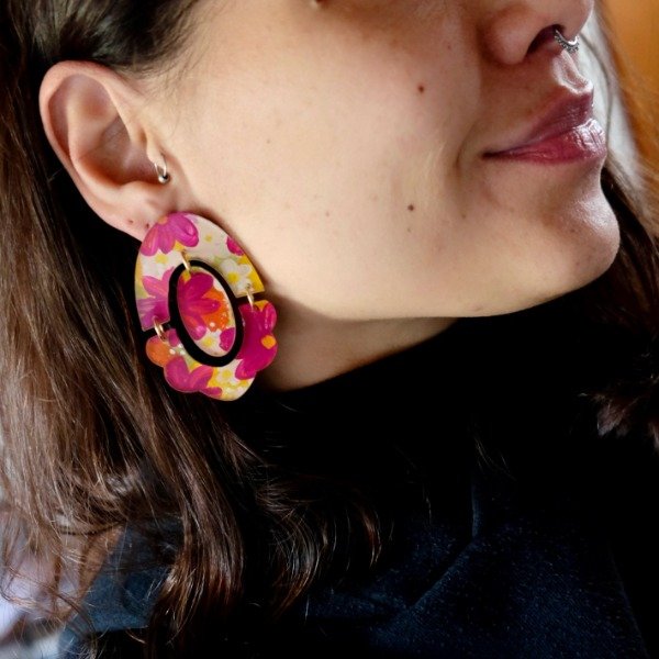 Aros de edicion limitada de acrilico, pintados a mano con argolla de acero quirurgico o doradas.