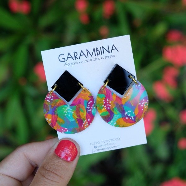 Aros de edicion limitada de acrilico, pintados a mano con pasante de acero quirurgico.