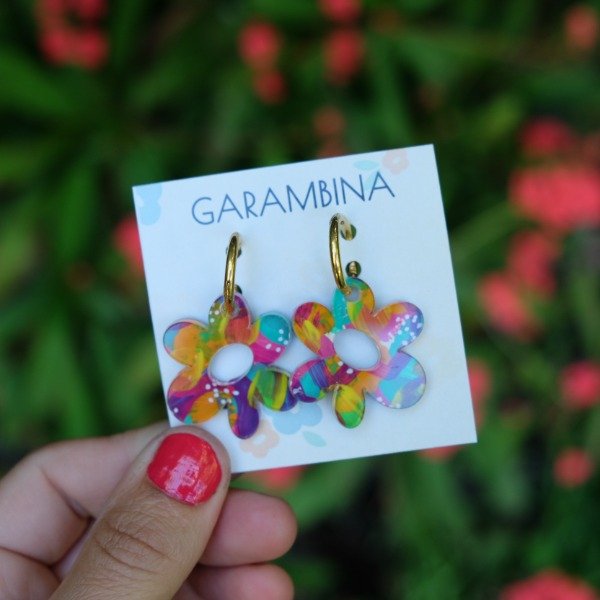 Aros de edicion limitada de acrilico, pintados a mano con argolla click de acero quirurgico o doradas 15mm.