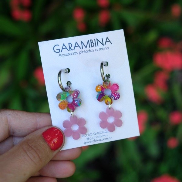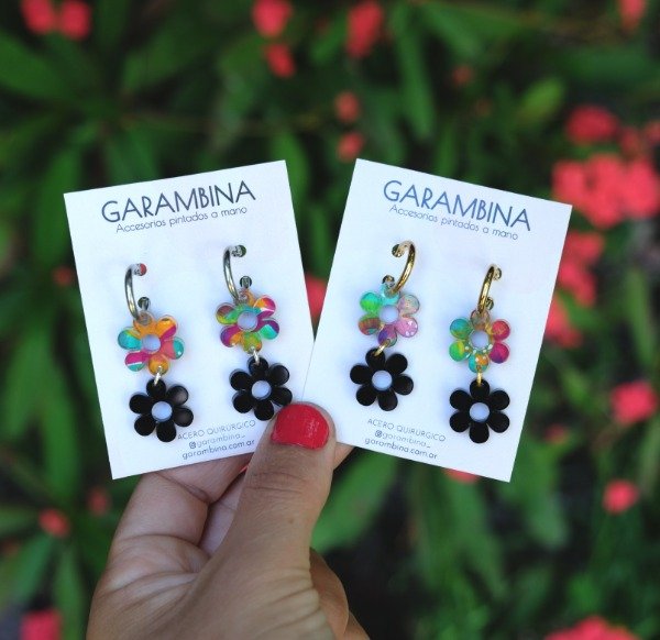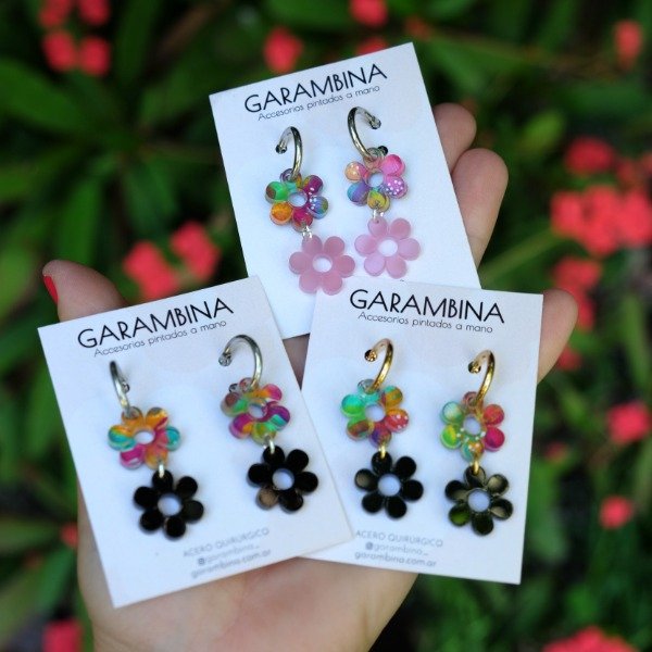 Aros de edicion limitada de acrilico, pintados a mano con argolla de acero quirurgico o doradas.