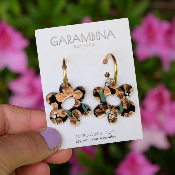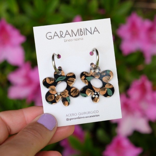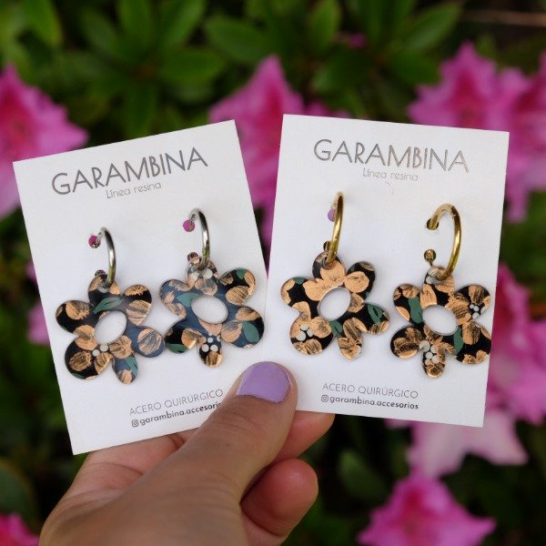 Aros de edicion limitada de acrilico, pintados a mano con argolla de acero quirurgico o doradas.
