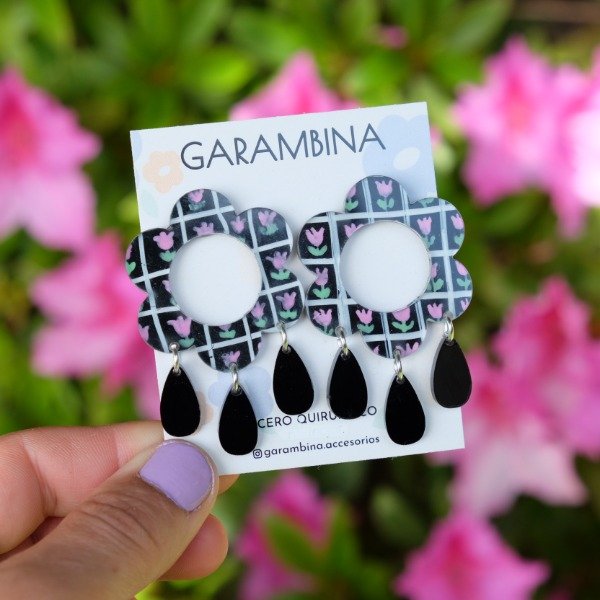 Aros de edicion limitada de acrilico, pintados a mano con argolla de acero quirurgico o doradas.
