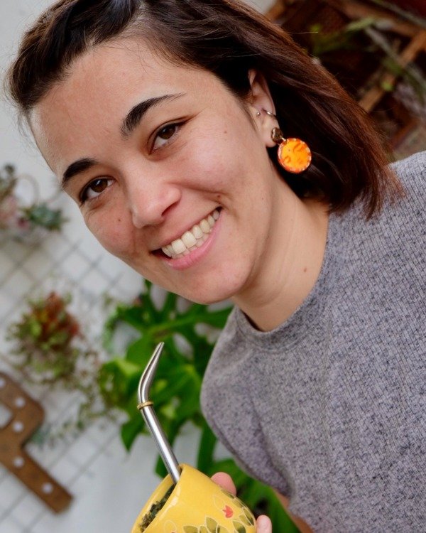 Aros realizados a mano en porcelana fría, pintados, con terminación en resina y pasante de acero quirúrgico. Son súper livianos.
